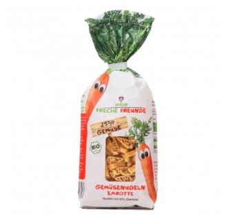 Gemüsenudeln Karotte mit 25% Gemüse. Unser frecher Karl Karotte hat sich ein Herz gefasst und ist mutig in den Nudelteig gesprungen! Das Ergebnis kann sich schmecken lassen: So lecker hat sich Karl noch nie versteckt!