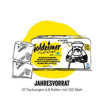 Das soziale Klopapier aus 100% Recyclingpapier. 27 Packungen Klopapier mit jeweils 8 Rollen. 3 Lagen, 100% Recycling-Papier, 150 Blatt. -Eine hundertprozentige Garantie auf die Verfügbarkeit kann nicht gegeben werden. Zur Sicherheit empfehlen wir in der entsprechenden Filiale nachzufragen.-