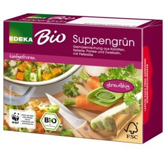 Gemüsemischung aus Karotten, Sellerie und Porree, mit Zwiebeln und feingehackter Petersilie. Streufähig. Tiefgefroren. Aus kontrolliert ökologischer Landwirtschaft.