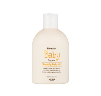 유기농 로즈힙 오일이 풍부하게 함유되어 건조한 아기 피부를 부드럽고 촉촉하게 지켜주는 집중 보습용 베이비 바디 오일.